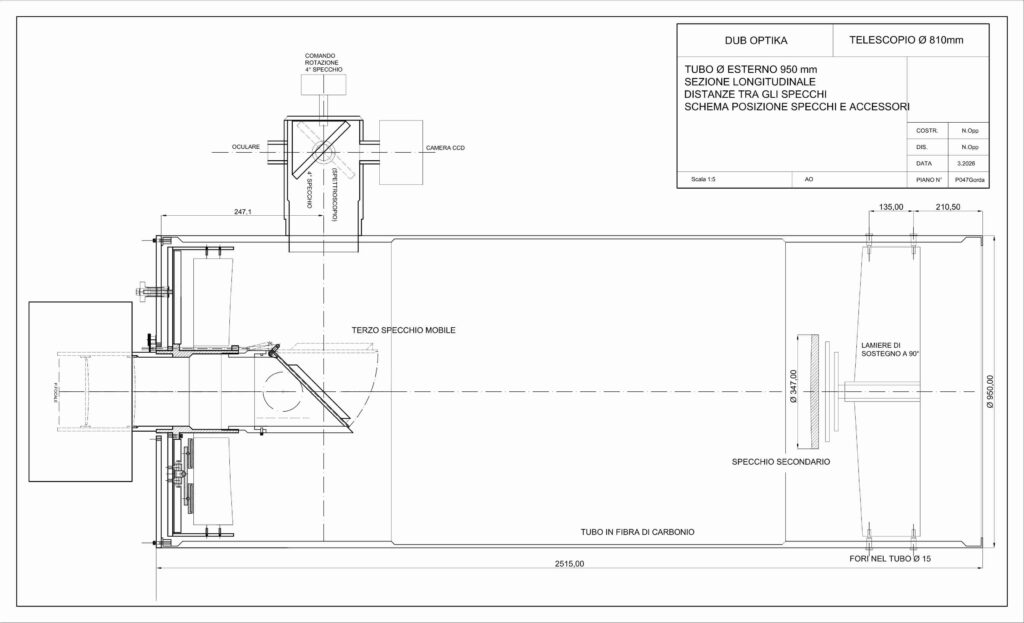 Il telescopio avrà una configurazione ottica Ritchey-Chretien, diametro 810 mm F: mm 6400 F/D 8